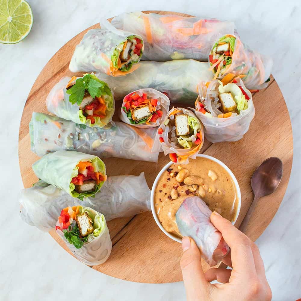 Vegan Spring Rolls with Crispy Tofu and Peanut Sauce